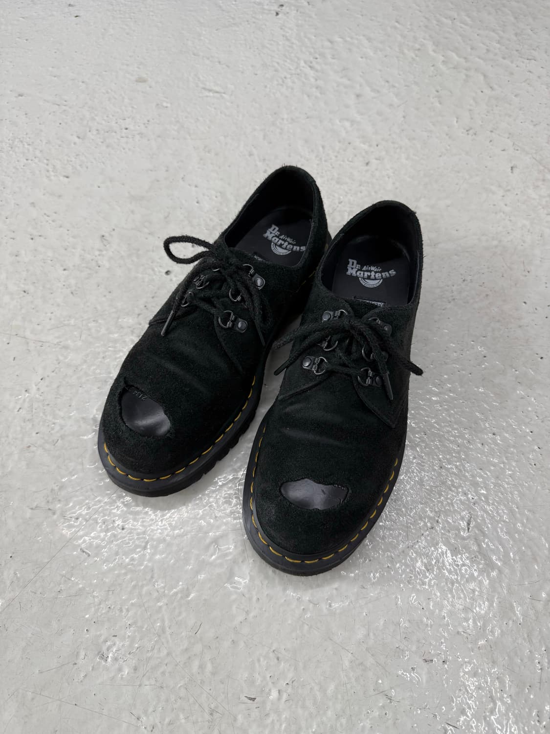 닥터마틴의 스웨이드 재질로된 패치 디테일이 돋보이는 제품입니다. 스웨이드 재질의 빠르게 에이징되는 특성에 비해 전반적인 컨디션은 우수한편이며 빈티지한 무드가 여러 스타일에 매칭하기 좋은 아이템입니다 : ) 나이키 운동화 기준 265(약간 업사이즈연출)-275(딱맞는 사이즈) 정도로 보시면 될거 같습니다!