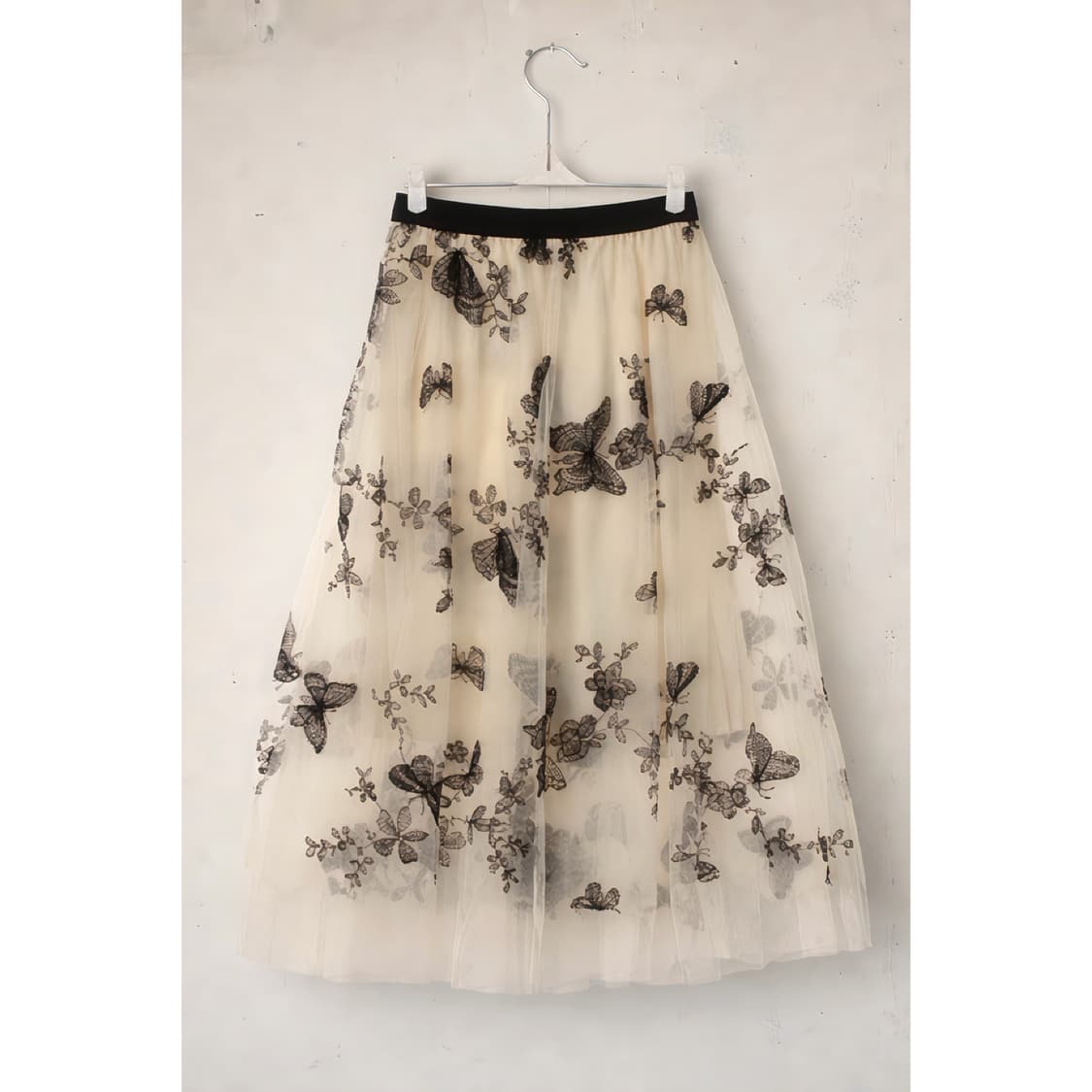 나비 쉬폰 화이트 스커트