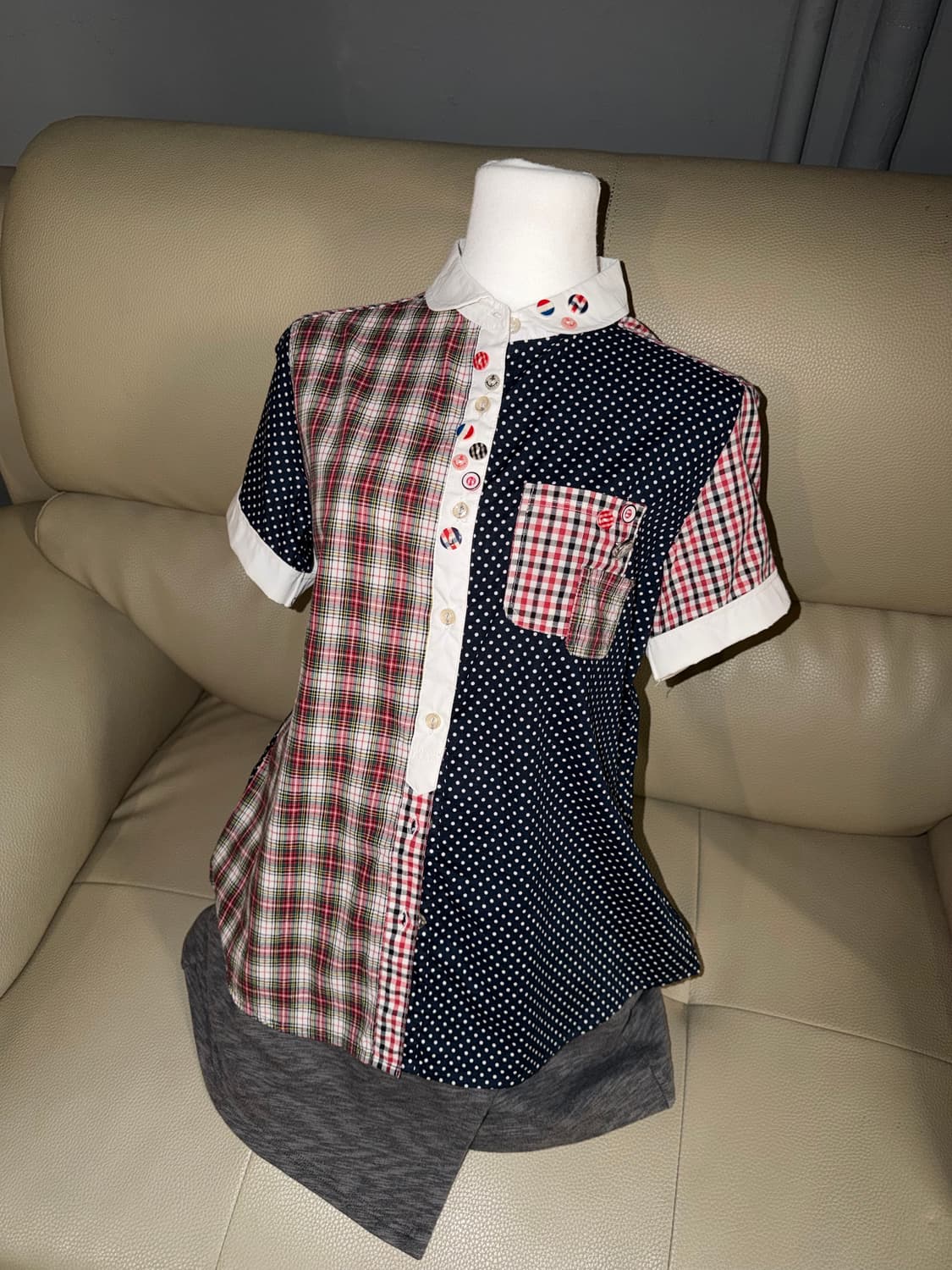•kawaii button pattern mix shirt •size: cm 37 48 56(어깨 가슴 총장) •price: 38000 -카와이한 버튼 디테일 포인트 반팔 셔츠 -패턴 믹스된 디테일과 다양한 버튼으로 너드하면서 카와이한 무드류 착용하기 넘 좋아여 ㅎㅎ -팔라인 롤업된 디테일로 핏도 구웃 !!