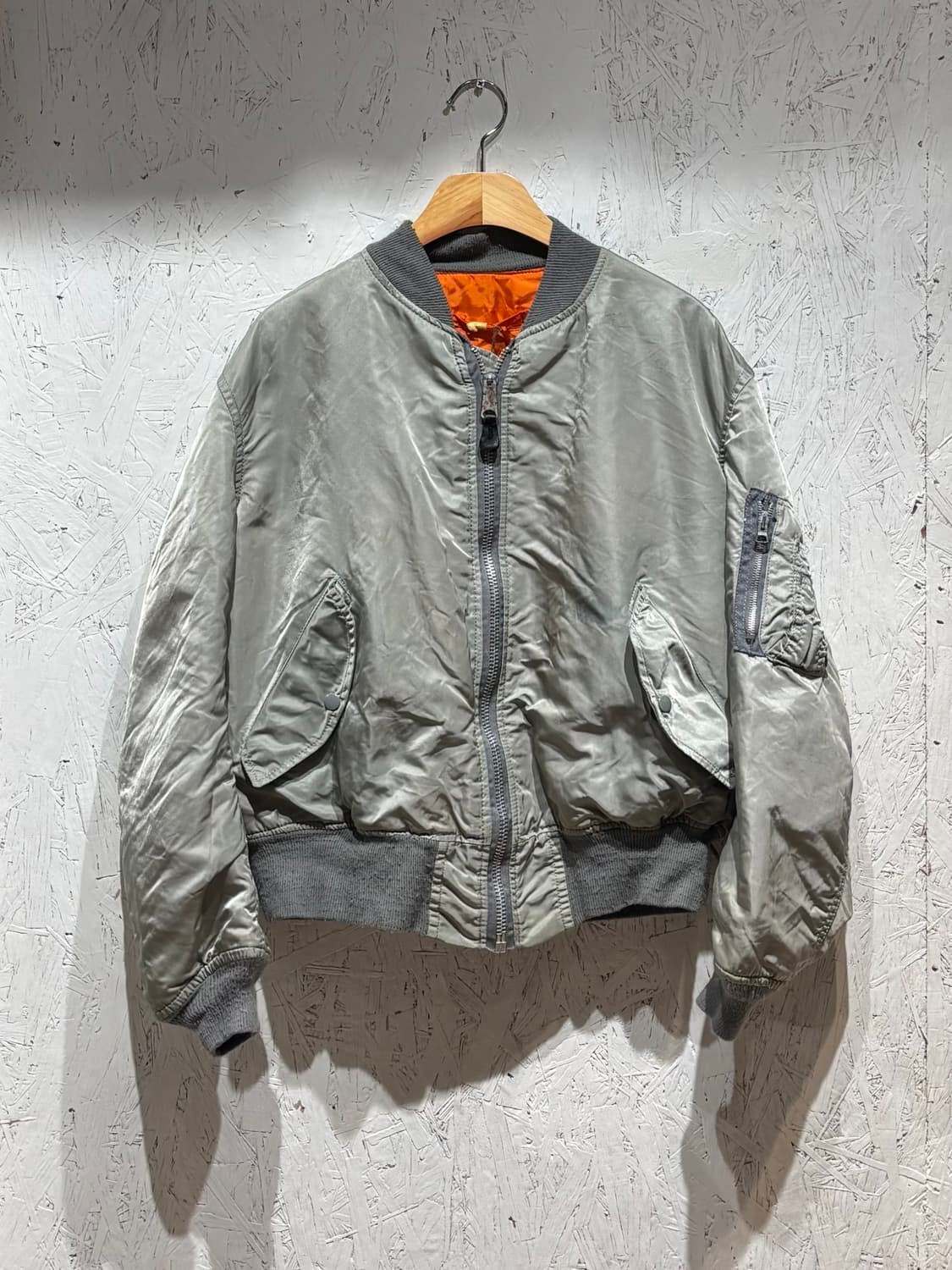 70-80’s alpha industries ma-1 flight jacket USA MIL-J-82790J, NSN 찍힌 후기형 알파 MA-1 / 70년대 후반 생산” size - L 어깨 53, 팔 57, 가슴 64, 총장 57(cm) 사이즈는 실측(cm)이며 재는 방법에 따라 약간의 차이가 있을 수 있습니다.