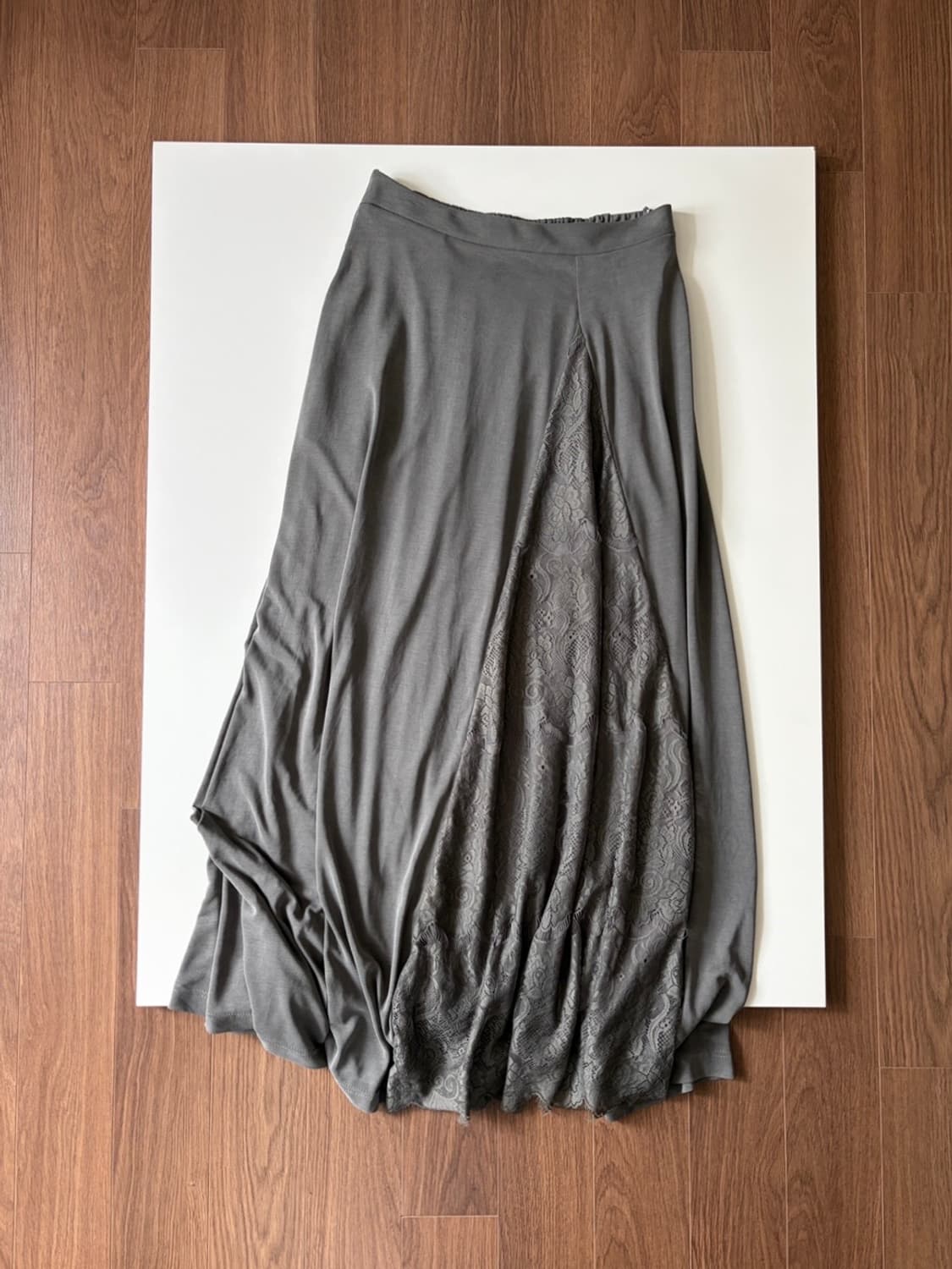 [color] olive gray [size] os [fabric] 모달 75% 폴리에스테르 25% [measurement] 허리(뒷밴딩) 33.5-40 총장 98 [model size] 165 / s-m * 매트한 표면감, 부드러운 촉감, 오묘한 광택감이 흐르는 소재감 * 오묘한 올리브 빛 그레이 컬러감 * 태그, 포켓 첨부 * 허리 뒷 밴딩 부분 미세 핀홀이 있는 컨디션(사진 참고)