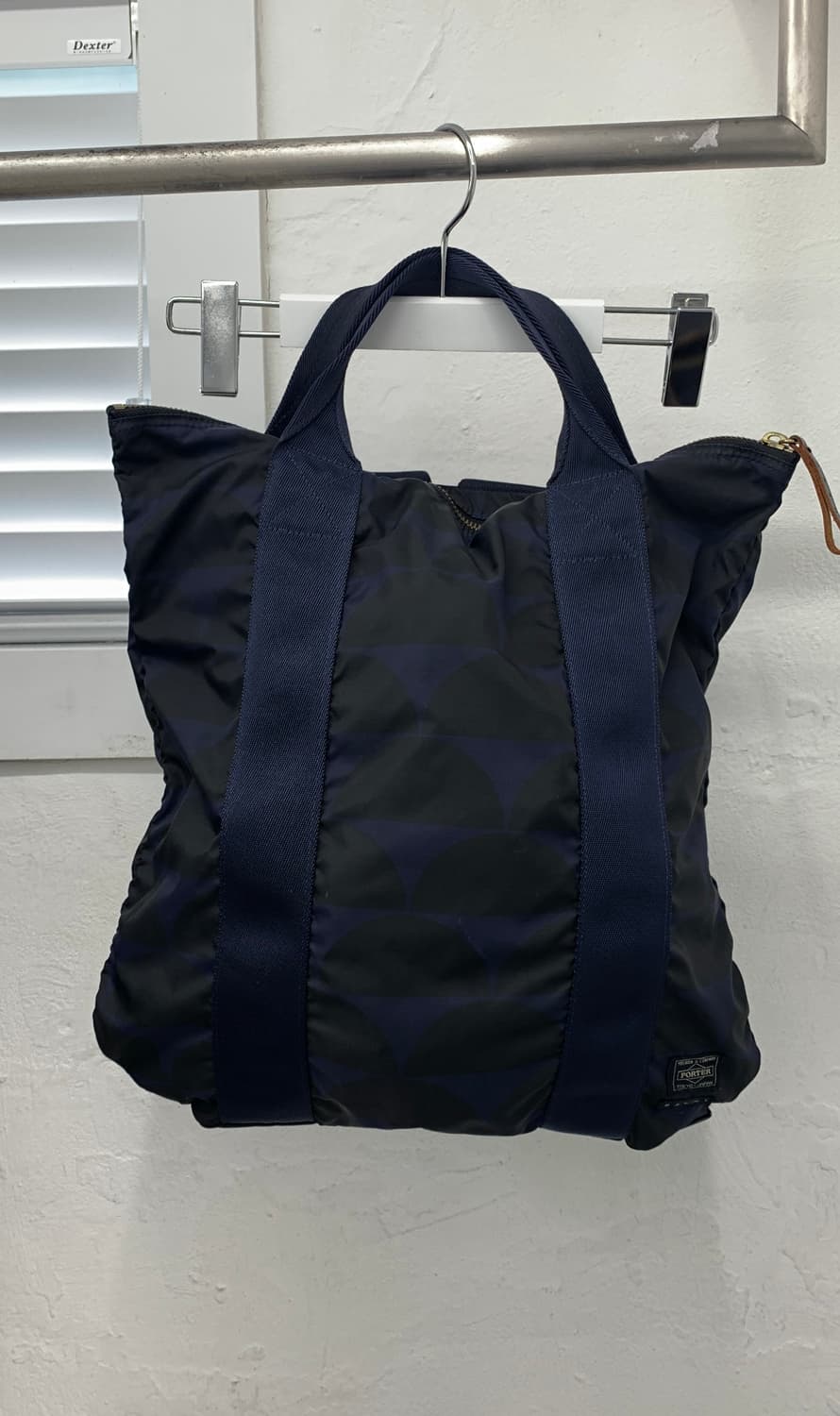 포터 x 마르니 콜라보 백 토트백 & 백팩 투웨이 방수소재와 넉넉한 크기로 좋은 실용성 마르니의 단정한 키치함과 포터의 깔끔함이 조화롭게 믹스된 아이템 가로 40 세로 42 토트백 끈길이31