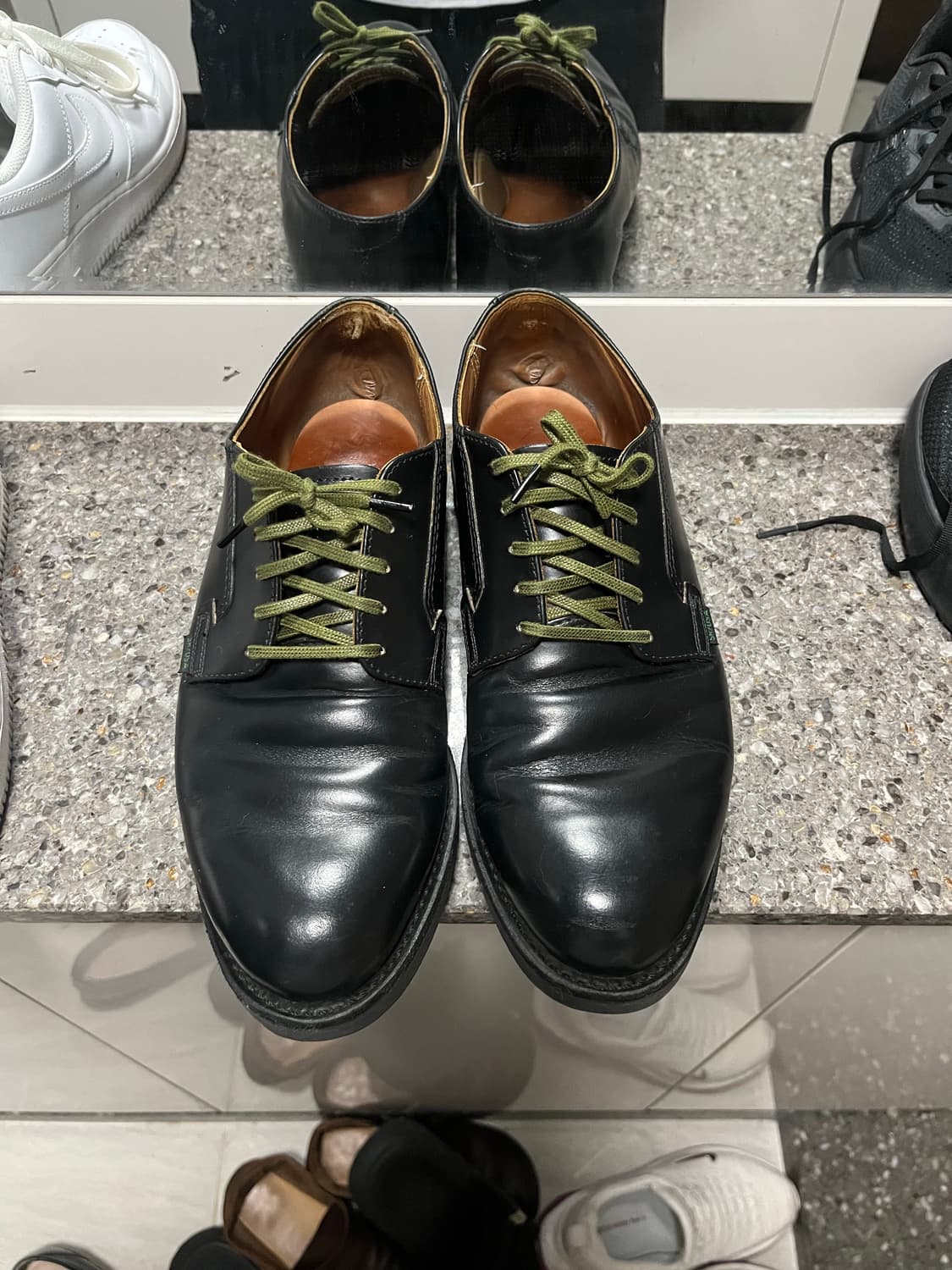 레드윙 101 포스트맨 9.5D (275) 14~15년도 구매후 기간대비 착용횟수 적고 관리 잘했습니다 최근 신형보다 주름이 굵게 생기는 매력있는 개체입니다 센더스 올리브끈 / 순정끈 함께 드리겠습니다