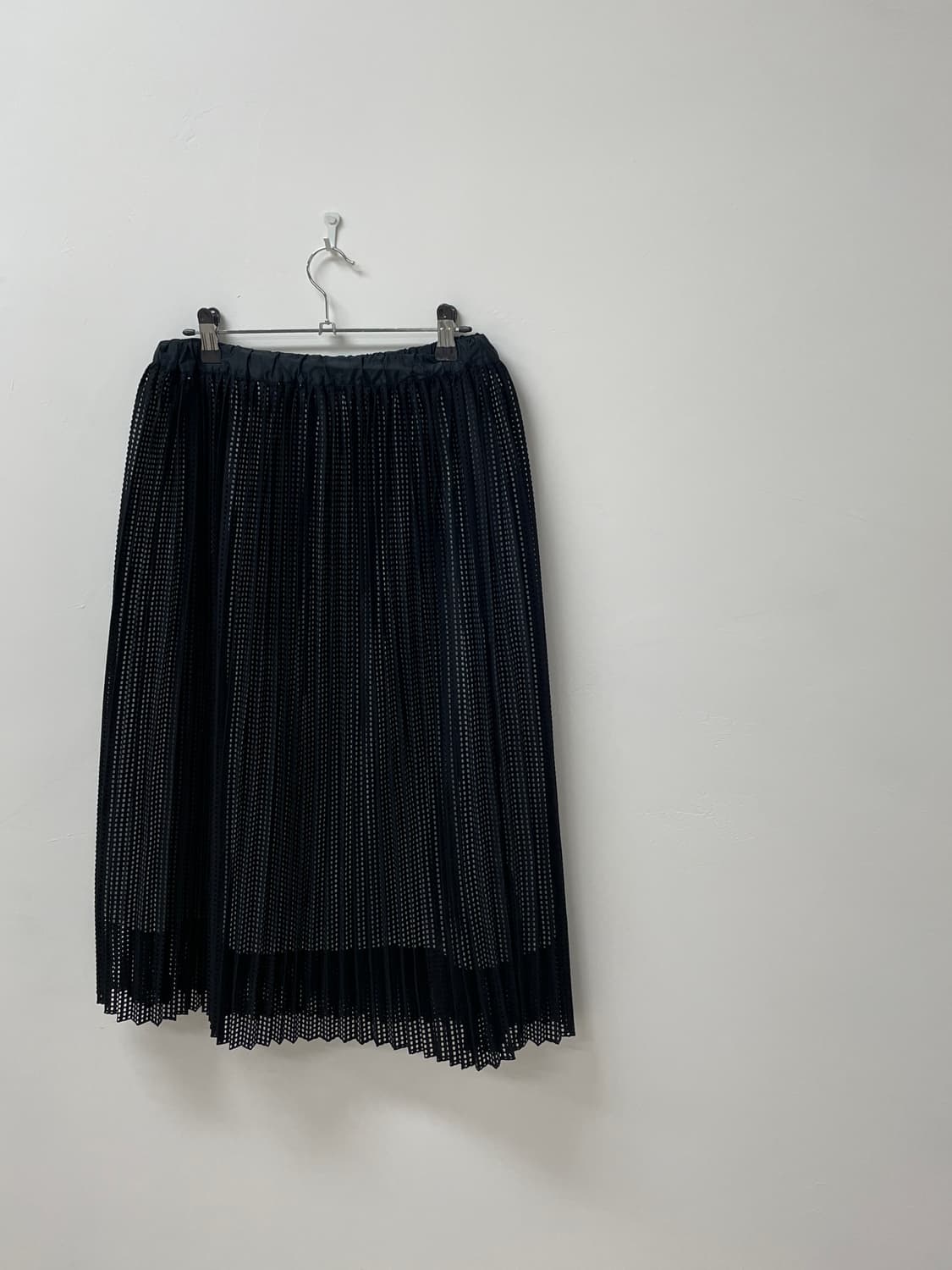 rhythomos 블랙 펀칭 플리츠 스커트 허리 36 (고무밴딩 최대 46 ) 기장 72 폴리 100