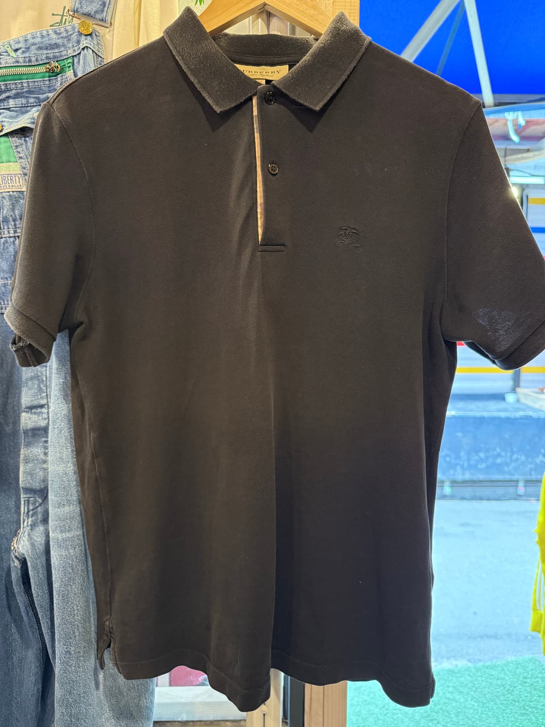 버버리 런던 노바체크 디테일 블랙 반팔 티