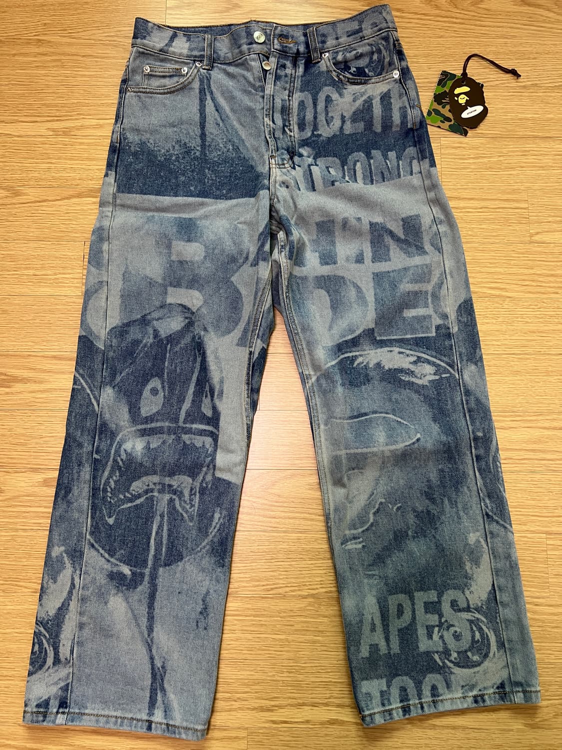 베이프 오버롤 레이저드 릴렉스드 핏 13온즈 데님 팬츠 라이트인디고 M 사이즈 판매합니다 M - 허리 38 X 엉덩이 53.5 X 밑위 40.5 X 밑아래 74 CM 발매일 : 2025/07/12 발매가 : ¥46,200 작년 도쿄 긴자에 있는 베이프 가게에서 구매했습니다. 택 떼고 실착 몇 번 했습니다. 패치 살짝 까짐.