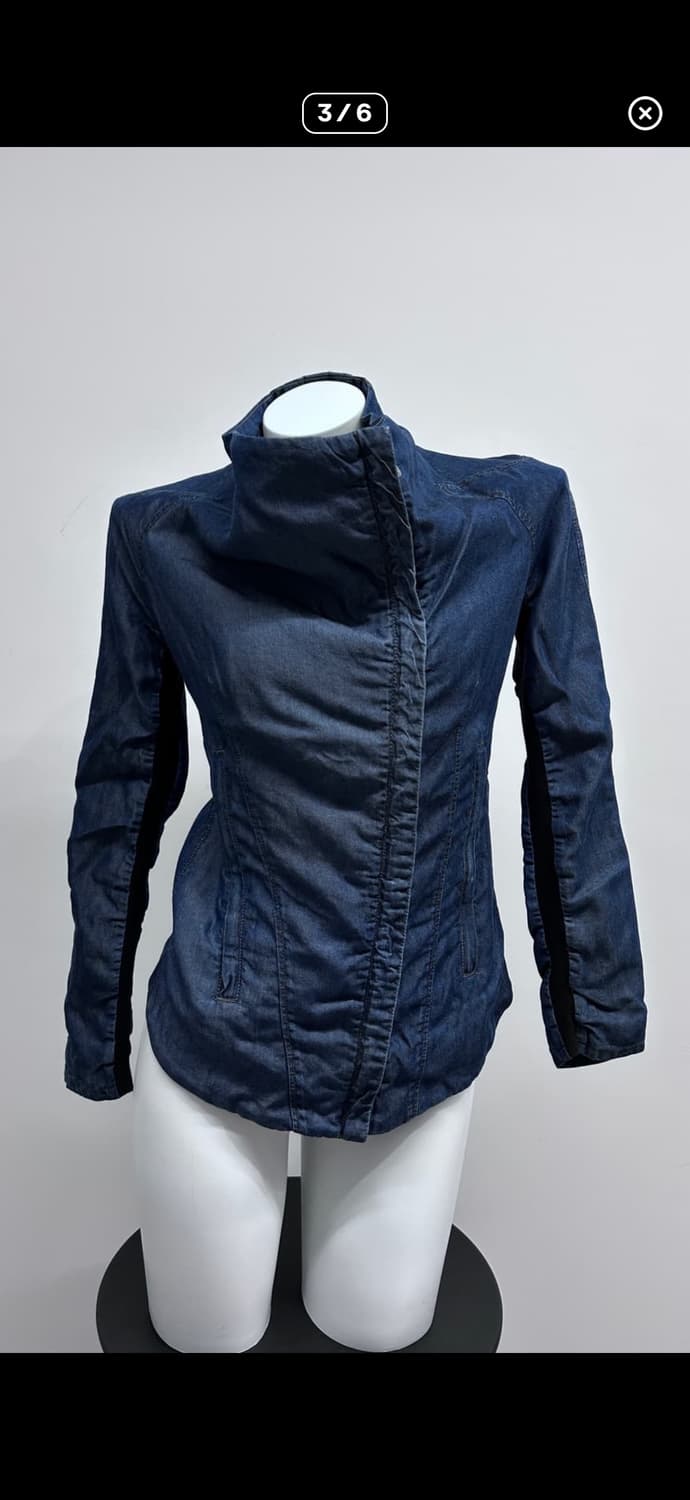 Helmut Lang Asymmetric Tencel Jacket 독특한 비대칭 디자인이 돋보이는 제품입니다. 사이즈 여자 L 남자 M 어깨 45 가슴 49 총장 앞 66 뒤 58 팔 56 드레이프 디테일과 YKK 비대칭 지퍼 디테일