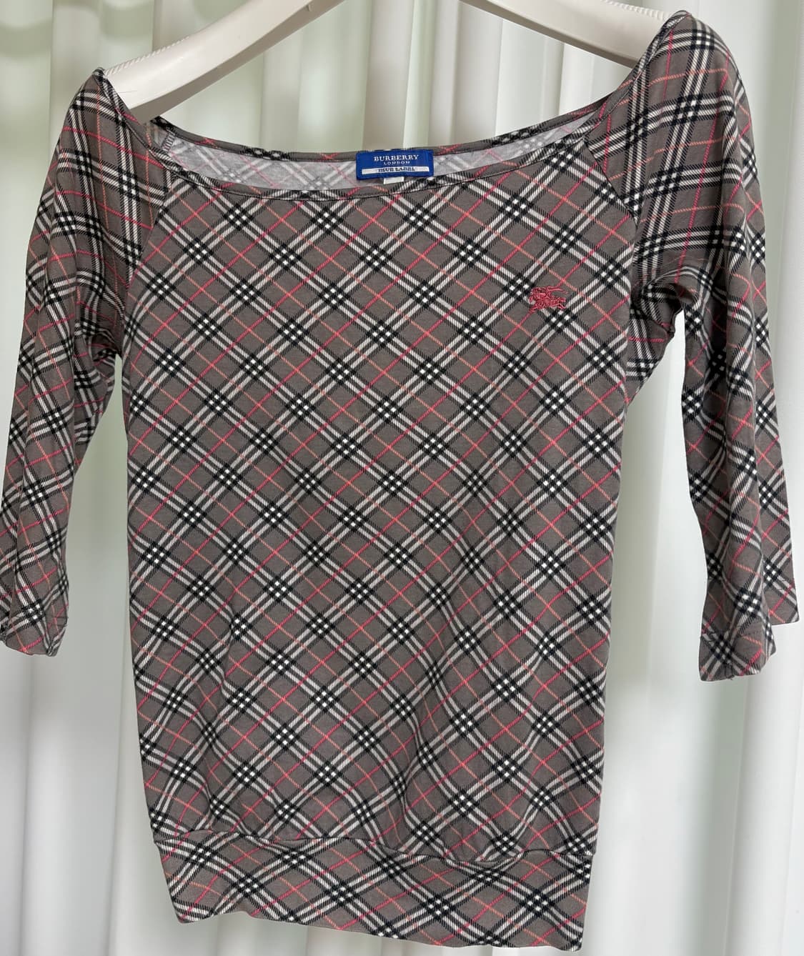 버버리 블랙라벨 노바체크 카라 블랙 반 집업 니트