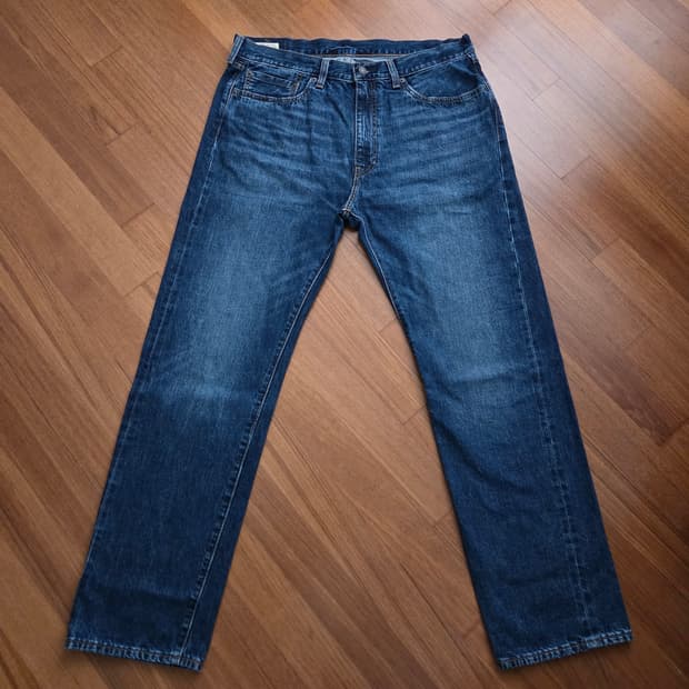 W32 L30 워싱 좋은 514입니다 514는 slim straight 핏이며, 허벅지가 너무 핏하지 않은 레귤러한 제품입니다. 리바이스 공식적으로 허리에서 좀 내려입도록 나온 제품으로서, 골반에 살짝 걸쳐 입었을때 과하지 않고 예쁜 핏감이 나옵니다. 또한 밑단이 타이트하지 않아서 신발을 덮었을 때 걸리는 부분 없이 자연스럽게 떨어집니다. 사이즈 역시 총장 101, 허리 32로 황금 사이즈입니다. 밑단 21 허벅지 27 허리 40.5(32인치) 총장 101