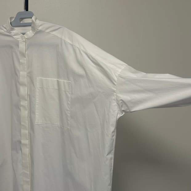 엔폴드 enfold 오버 롱 셔츠 흰색 롱 셔츠 스타일이라 편하게 입기 좋습니다. 넉넉한 오버실루엣 체크된 부분도 확인 바랍니다 그외 상태 좋습니다 총기장 113~115 가슴단면 85 어깨 81 소매 32 사이즈 36 무료배송 교환,환불 불가 수수료 판매자 부담