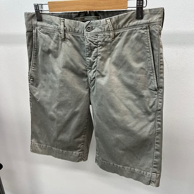 가먼트워싱으로 연출한 코튼의 조직감이 돋보이는 인코텍스의 팬츠입니다. 테이퍼드핏으로 재단된 스마트 실루엣이 매력적인 모델로 사이즈 44 국내 29 추천드립니다. 감사합니다. 상태 B 표기 사이즈 44 권장 사이즈 29 허리 38 밑위 30 허벅지 28 밑단 20 총장 102