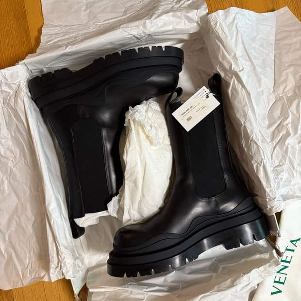 제품명 : 보테가베네타 타이어부츠 구입시기 : 2020.10 롯백 부산본점에서 구입 구입가격 : 1,830,000 사이즈 : 255 최상의 컨디션을 유지하고 있습니다 아직도 새것의 가죽냄새가 납니다 가장 아껴신었던 부츠이구요!! 가격흥정은 받지 않겠습니다 그만큼 가격받을 만큼 관리 잘 했고 충분하다고 생각하고 있습니다! 참고로 정사이즈보다 크게 나왔습니다 저는 한치수 작게 구입한거구요 실제로는 265 신습니다