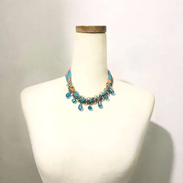 터키석으로 만든 매듭팔찌예요. 펜던트는 스와로브스키 입니다.