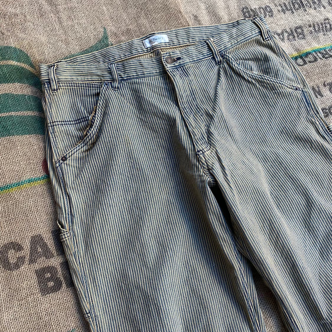 [37-38] B.C Factory 스트라이프 카펜터 와이드 팬츠 •condition : 9/10 •price : 2.8 •전품목 무료배송 •Size : 37-38 허리48 총장105 허벅지36 밑단28