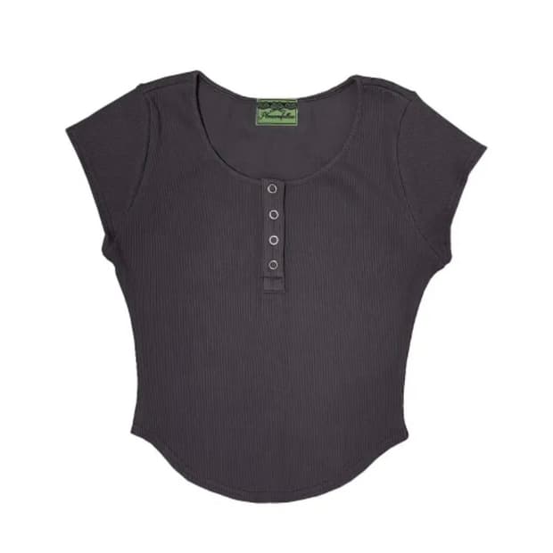 WISH RIBBED BUTTON TEE 애즈온 립드 버튼 티 블랙