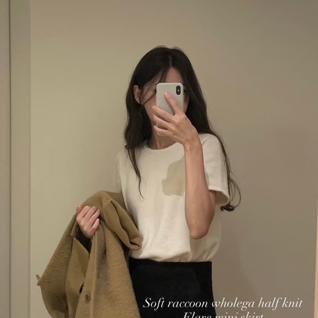 망고매니플리즈 네프 크롭 린넨 니트 아이보리